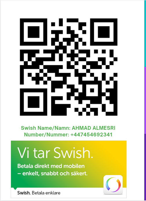 Make sure that if your Swish name is not the same name as the one you have provided us that you write it, or your email, in the message field with your Swish payment
