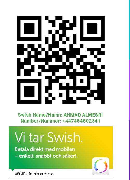Make sure that if your Swish name is not the same name as the one you have provided us that you write it, or your email, in the message field with your Swish payment